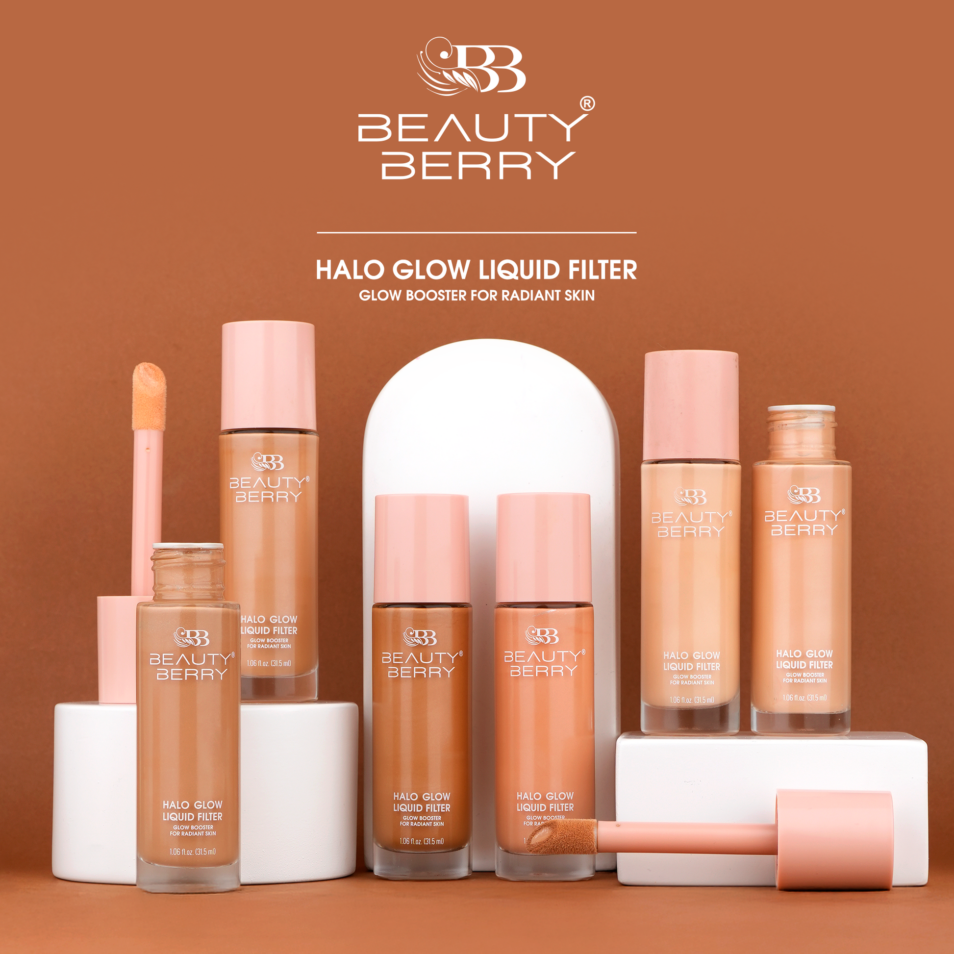 Meet your ultimate glow booster, Beauty Berry Halo Glow, a liquid radiance filter that gives your skin a luminous, soft-focus glow. This lightweight, skincare-infused formula blurs imperfections, smoothens the texture and delivers instant dewy glow for that lit-from-within look. Infused with Squalane and Hyaluronic Acid, it hydrates deeply, locks in moisture, and keeps your makeup fresh all day. You can wear it alone, under foundation, or as a highlighter, Halo Glow booster enhances your complexion with a touch of light and a lot of confidence, all packed in a sleek, recyclable glass bottle for sustainable beauty.